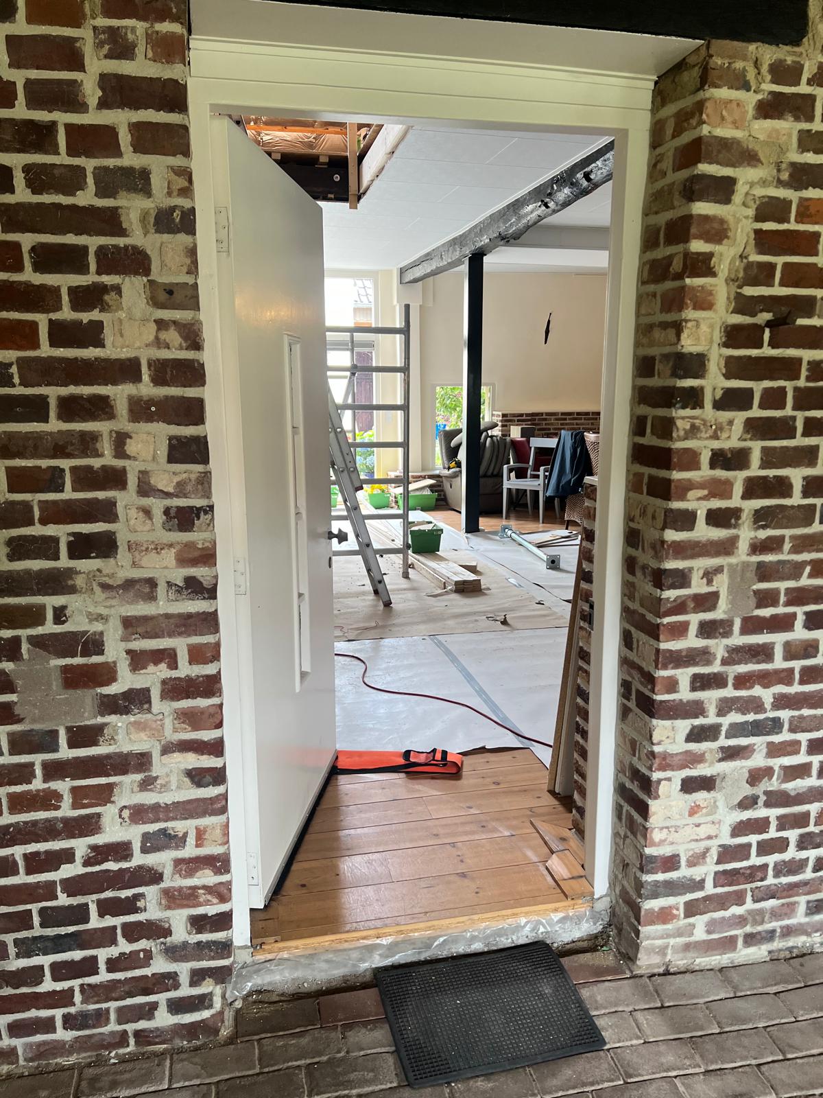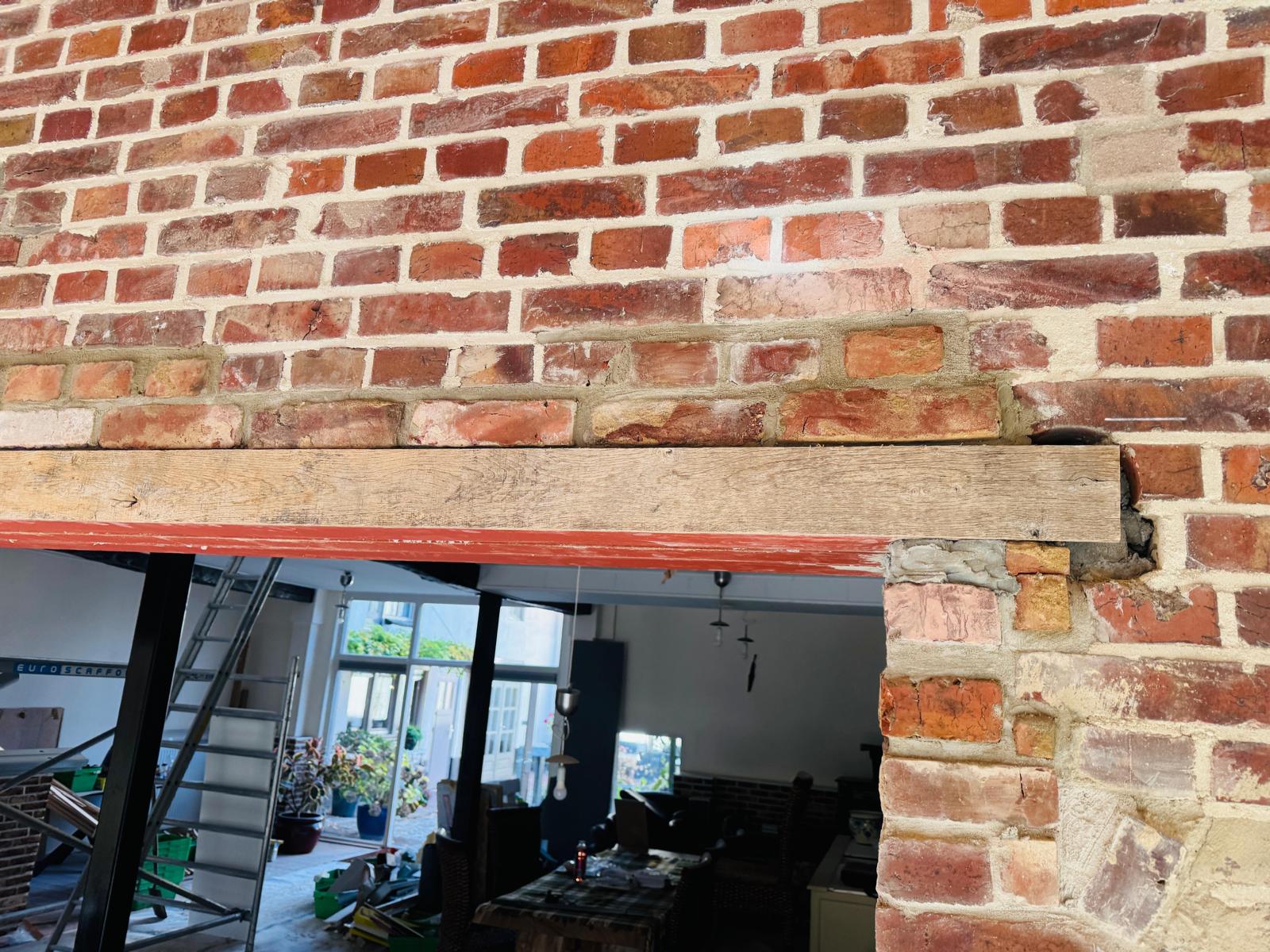 Voor dit project in Susteren hebben we in een karakteristieke boerderij uit circa 1870 nieuwe kozijnen geplaatst, waarbij oud en nieuw zorgvuldig samenkomen. We realiseerden openslaande deuren in een nieuwe sparing en plaatsten een raam in een bestaande deuropening. Een bijzonder aandachtspunt was de afwerking van de stalen draagbalk. Deze hebben we bekleed met oud eikenhout dat de klant nog beschikbaar had, waardoor het karakter van de boerderij behouden bleef en hergebruik op een natuurlijke manier werd geïntegreerd. Het resultaat is een functionele en esthetische oplossing die naadloos aansluit bij de historische uitstraling van het pand en de wensen van de opdrachtgever.